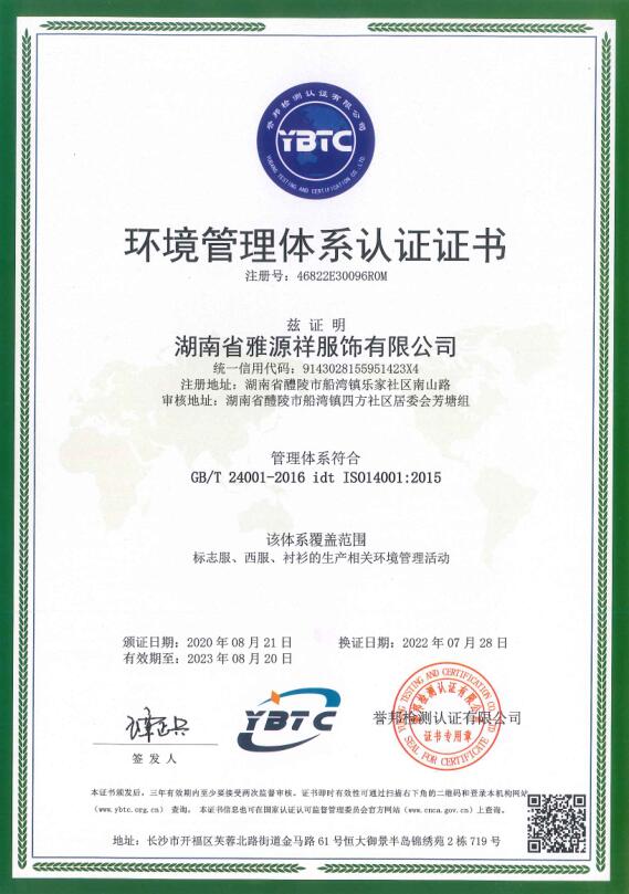 1、企業(yè)概況 湖南省雅源祥服飾有限公司地處湘贛邊境素有瓷城之稱(chēng)的醴陵郊區(qū),企業(yè)創(chuàng)建于1995年,是行政執(zhí)法制服、被裝的生產(chǎn)企業(yè)。2、組織機(jī)構(gòu) 跟隨改革開(kāi)放的步伐,我公司不斷發(fā)展壯大,公司董事會(huì)下設(shè)總經(jīng)理辦公室、生產(chǎn)部、技術(shù)部、質(zhì)檢部、財(cái)務(wù)部、采購(gòu)部、業(yè)務(wù)部等部門(mén),下設(shè)有流水線西服生產(chǎn)車(chē)間、標(biāo)志服生產(chǎn)車(chē)間、襯衣生產(chǎn)車(chē)間、... [更多]